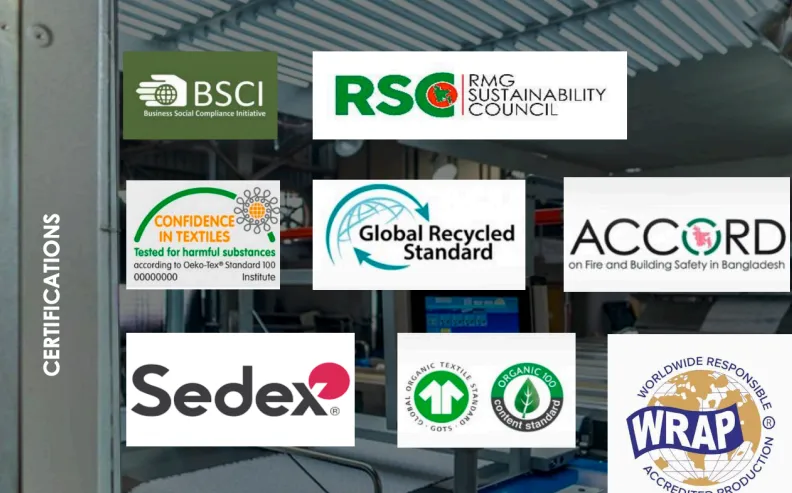 TEXLIONS LTD works with manufacturers that comply with, or are aligned to, internationally recognized standards such as BSCI, SEDEX / SMETA, WRAP, OEKO-TEX®, and GOTS / OCS.